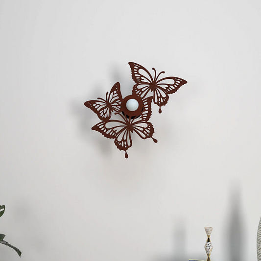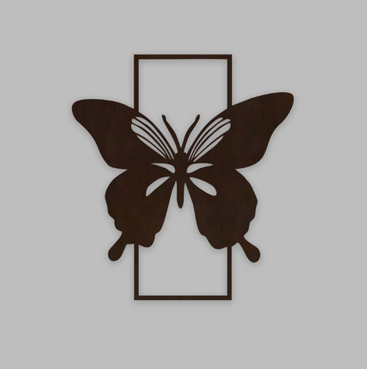 Modern Butterfly Art Backlit Wooden Wall Decor With LED Night Light Walnut Finis